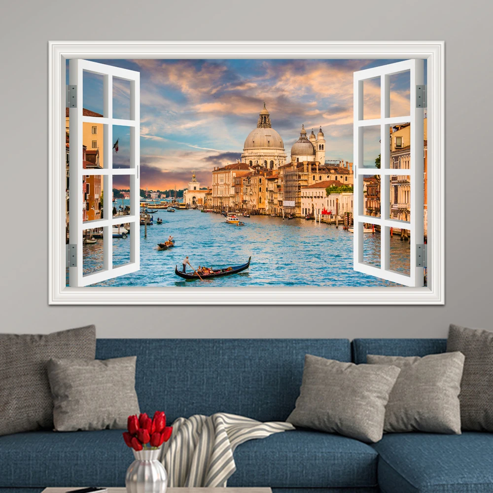 Водный город Венецианский закат декоративные наклейки обои для комнаты декор эстетика природный пейзаж 3D наклейки на стену для плитки