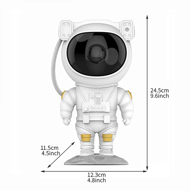 Стальная проволокаУникальный дизайн космонавта с изображением космонавтаНовый и уникальный дизайн внешнего вида космонавта перекликается с тематикой звездного неба и галактики и позволяет вам исследовать огромное звездное небо. Кроме того, лунное основание проекционной лампы астронавта является съемным, руку можно перемещать, и можно взять различные позы, что также является хорошим украшением.Стальная проволокаЦветной HD ночник-светильник с цветным светодиодным индикаторомПроекционная лампа астронавта использует Светодиодный проекционный объектив с более высоким разрешением, проекционный рисунок более яркий и четкий, а цвет более блестящий. 7 моделей туманности можно использовать одновременно или индивидуально. Головка космонавта может поворачиваться на 360 ° магнитно, позволяя спроектировать туманность в любом месте, превращая потолок и стены в планетарный вид Вселенной в спальне, вы чувствуете себя на месте.Стальная проволокаДистанционный пульт дистанционного управления и таймерПульт дистанционного управления может управляться дистанционно в диапазоне до 20 футов, удаленно настраивая и регулируя цвет, яркость и мерцание частоты туманности и звездного неба. Вы можете автоматически выключить таймер и начать настройку с 45/90 минут. Родители не должны вставать и выключать проектор космонавта после того, как ребенок уснет, это помешает вам и вашему ребенку спать. Детям нужен этот друг!Стальная проволокаВеселые подарочные открыткиЕсли вы все еще беспокоитесь о подарок на день рождения вашего ребенка, тогда Ночной светильник с проекцией космонавта-звезды, несомненно, ваш лучший выбор. Это идеальный праздничный подарок для ваших любимых, детей, семьи и друзей.