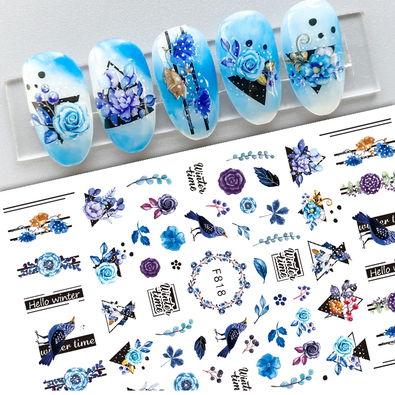 Осенне-зимние 3D наклейки для ногтей Геометрия роза цветы линия Птица Дизайн Маникюрные наклейки переводки декоративные аксессуары для дизайна ногтей