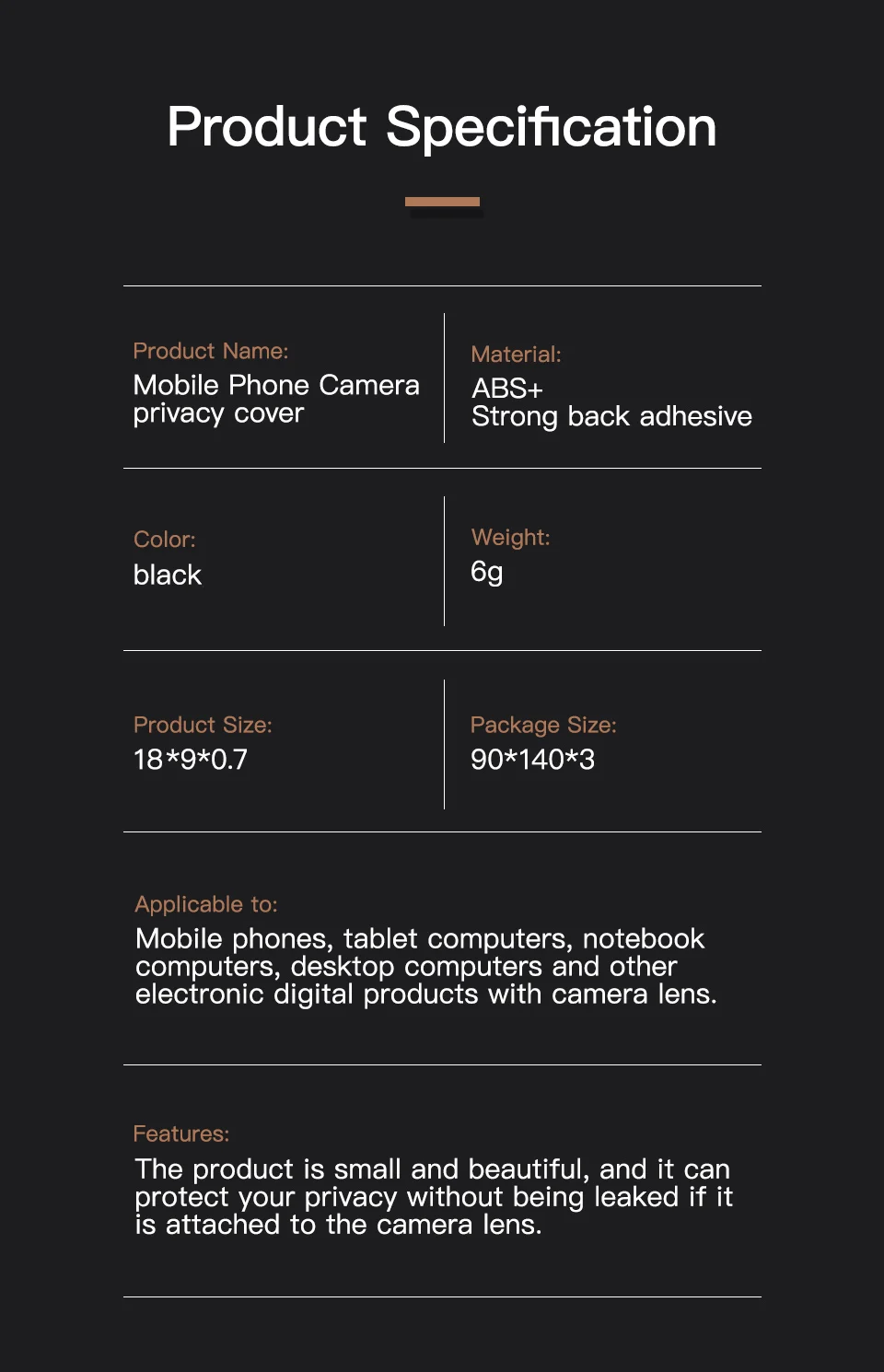 Feature 7Webcam cover for laptops; webcam cover for iPad