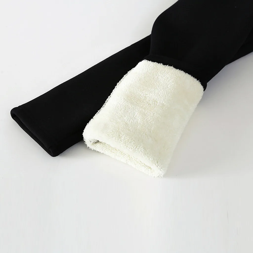 Зимние женские теплые пушистые леггинсы с высокой талией и флисовой подкладкой