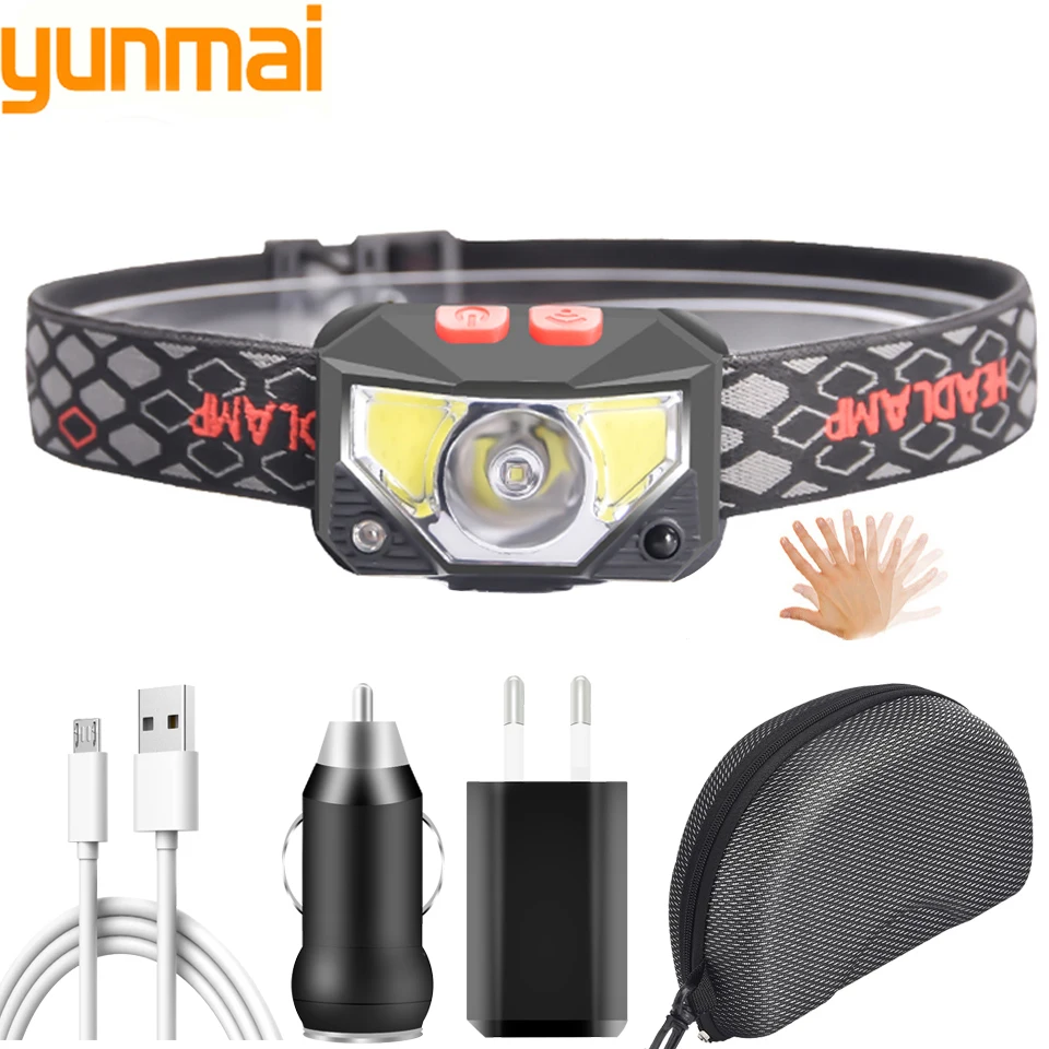 Головная лампа со встроенным аккумулятором XP-G Q5, лампы для фар, водонепроницаемые, с белым и красным датчиком цвета, светодиодный головной фонарь с фокусировкой