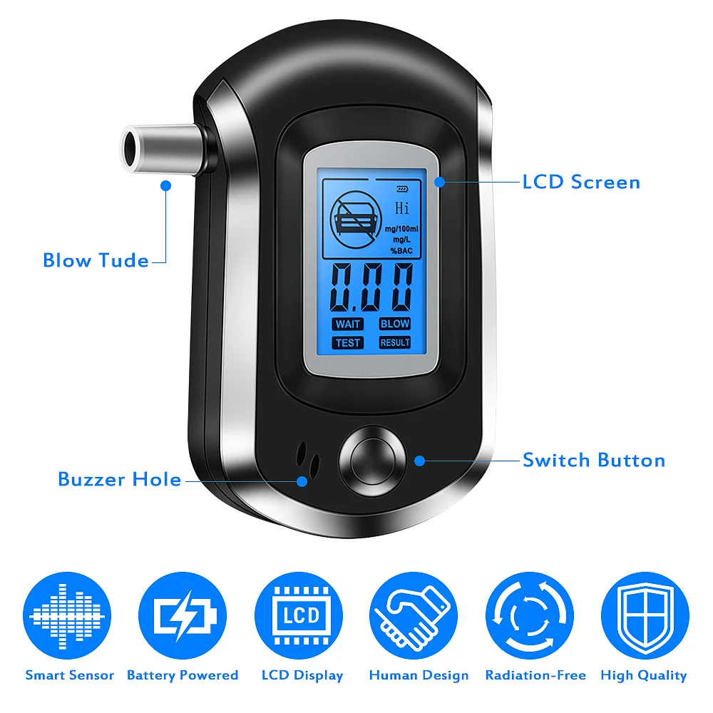 Цифровой алкотестер с ЖК-дисплеем, алкогольно-респираторная трубка ...