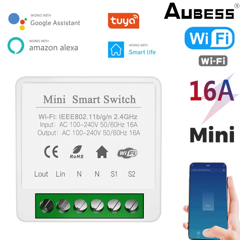 Модуль Wi-Fi Tuya Mini 16 А с двухсторонним управлением через приложение Smart Life, прерыватель для умного дома, голосовое управление, работает с Alexa, Google