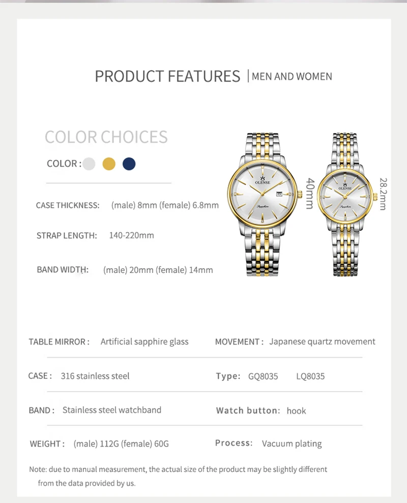 Новинка 2022, роскошные парные часы OLENSE, модные часы для влюблен...