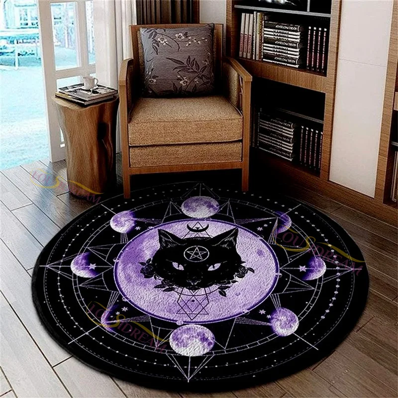 Персонализированный круглый ковер, кошачья коза, сатиновая ковровая дорожка, коврик для ванной, черный коврик для украшения гостиной и дома