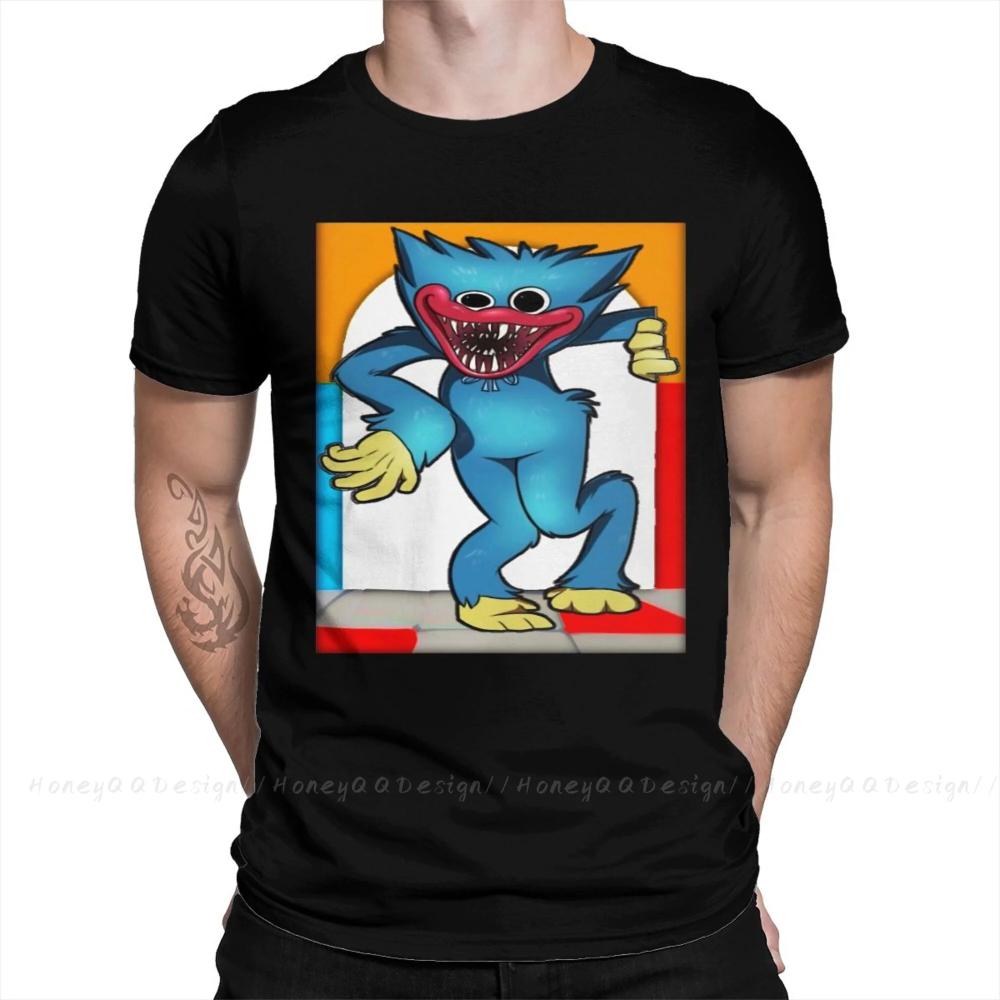 Футболка мужская оверсайз из чистого хлопка, черная рубашка с рисун...