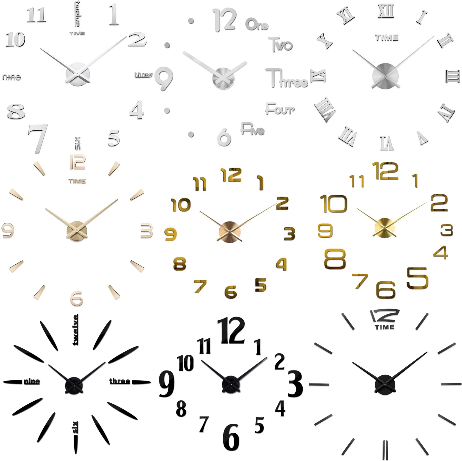 Настенные часы, большие настенные часы, часы, Зеркальная Наклейка н...