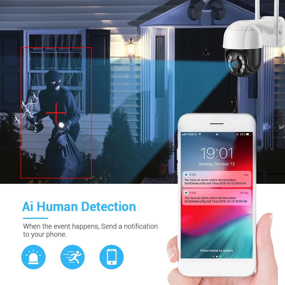 Когда кто-то врезается в область съемки, камера издаст сигнал тревоги и натолкнет уведомление на вашем телефоне