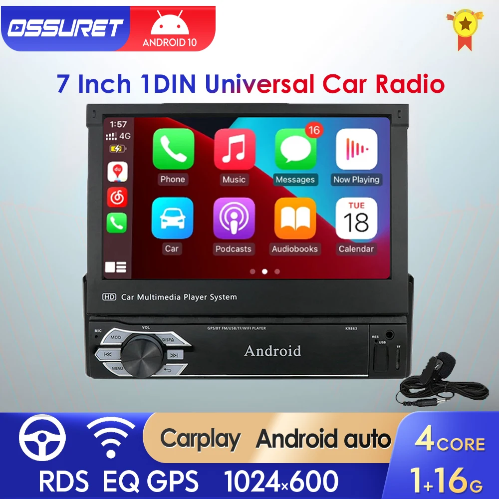 Мультимедийная магнитола, универсальная стерео-система на Android, с выдвижным экраном 7 дюймов, Wi-Fi, USB, GPS, Типоразмер 1DIN
