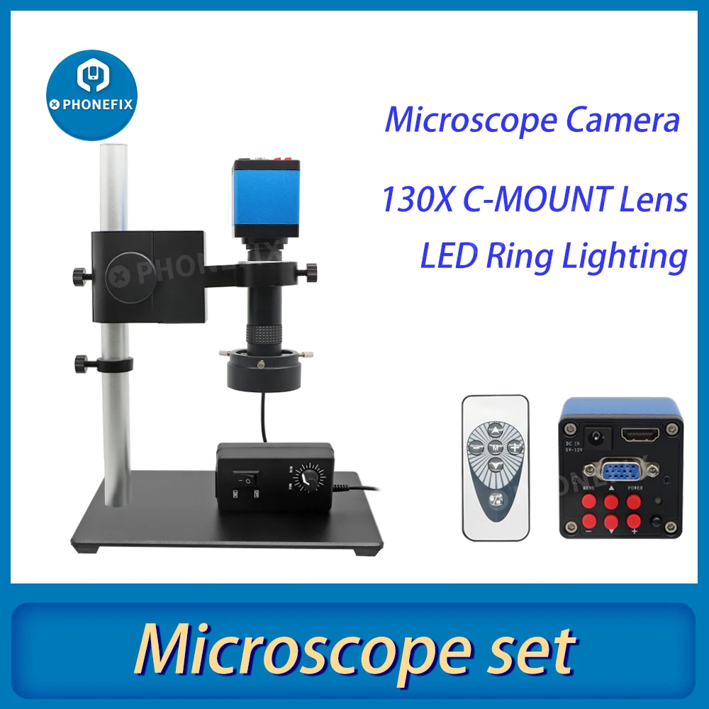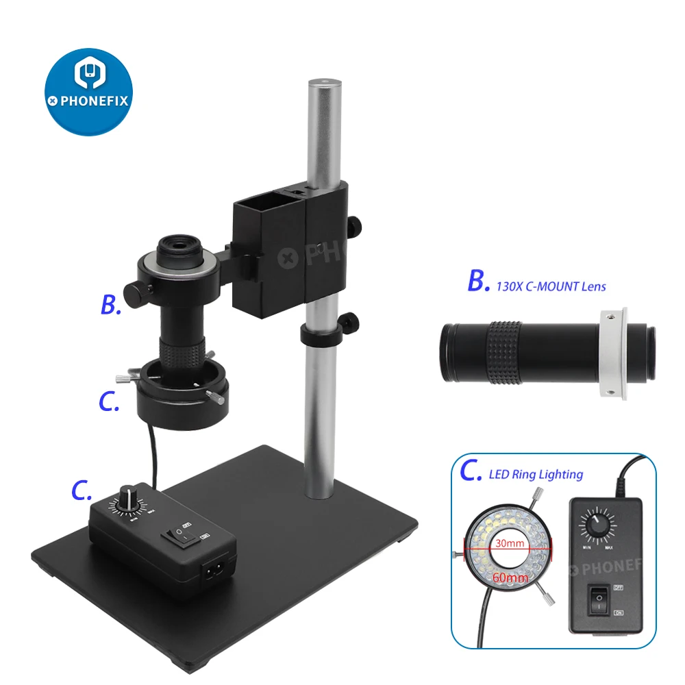Промышленный HDMI VGA цифровой микроскоп набор Full HD 13MP 60F/S HDMI VGA микроскоп камера + 130X C крепление объектива 56 светодиодный кольцевой светильник