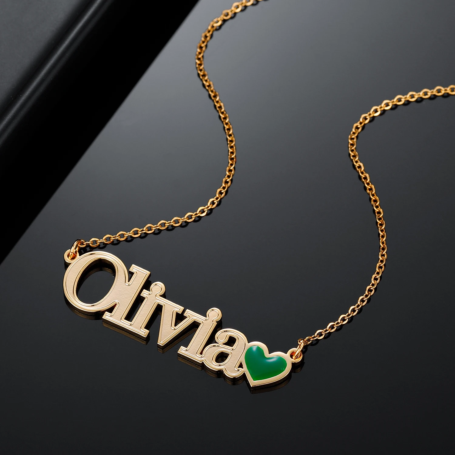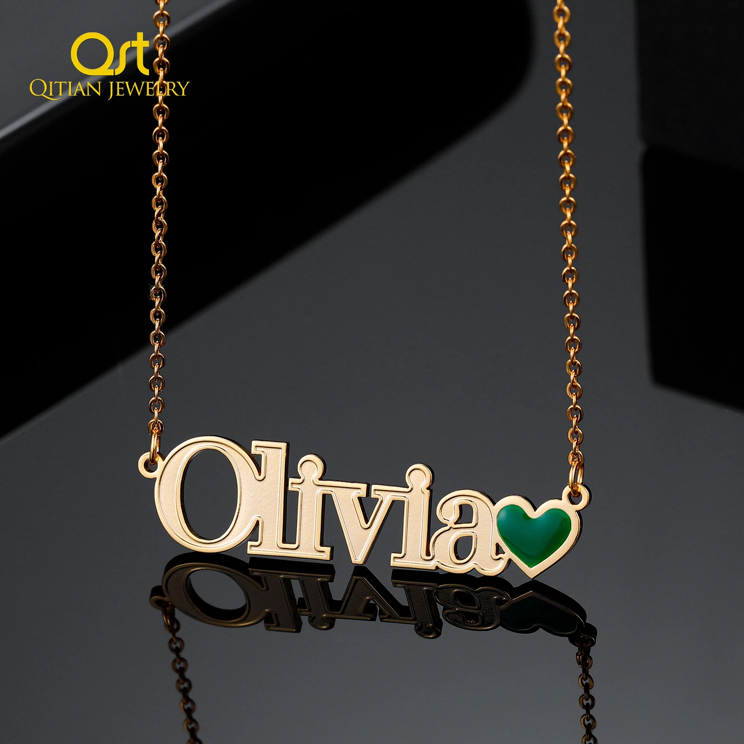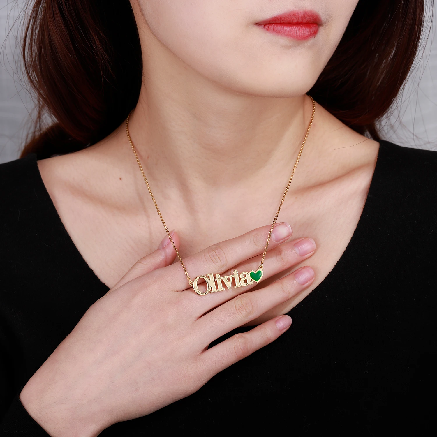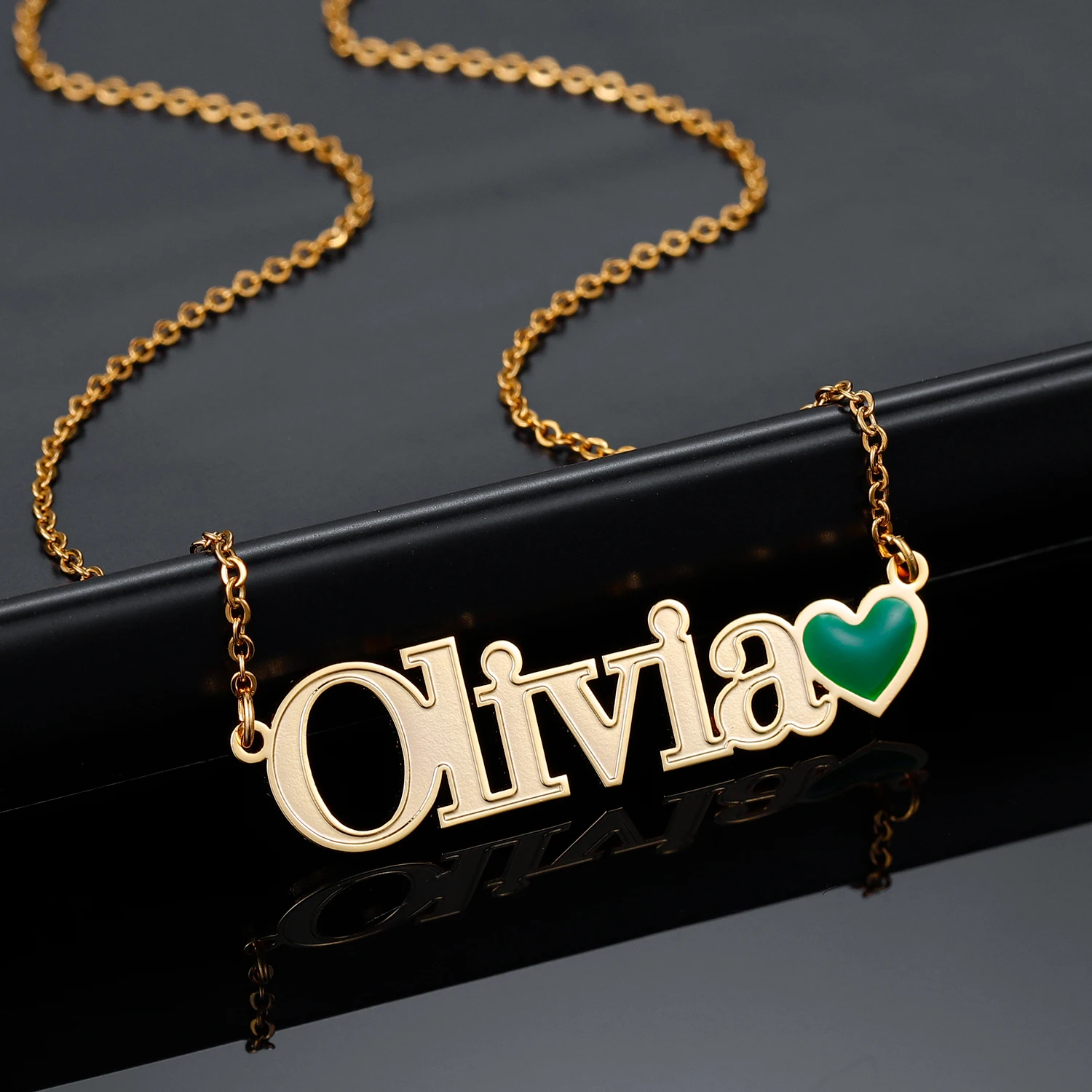 Ожерелье с именем на заказ, персонализированный Красочный кулон с сердцем, Золотая цепочка, табличка из нержавеющей стали для женщин