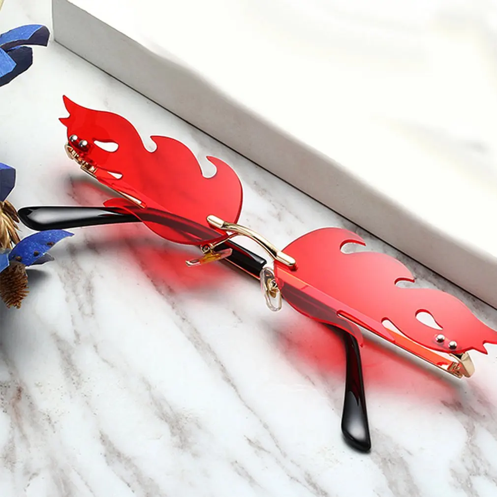 Модные солнечные очки в форме огненного пламени для женщин и мужчин, солнцезащитные очки без оправы в форме волны, защита от УФ 400, роскошные узкие солнцезащитные очки, аксессуары для велоспорта