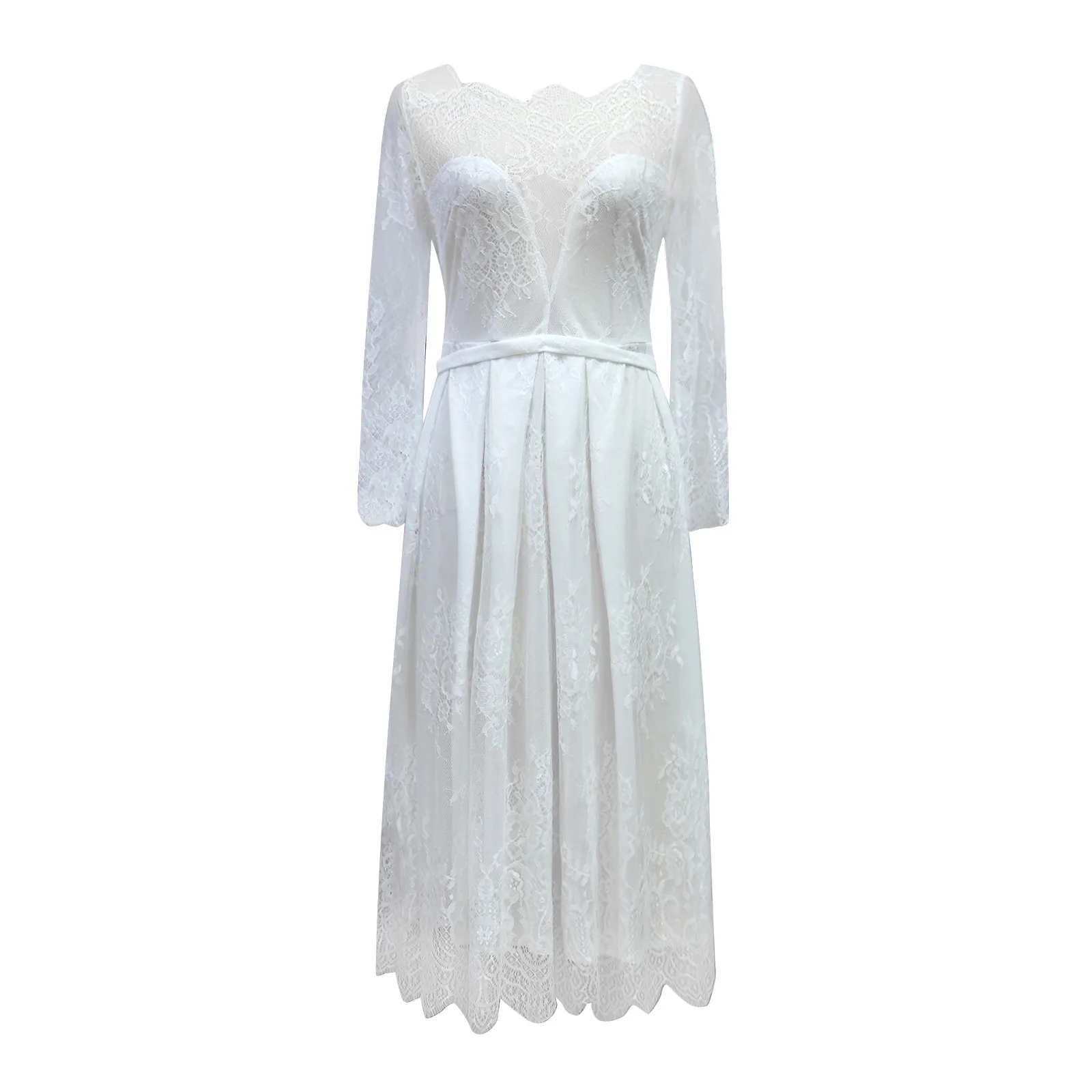 Элегантное белое кружевное платье, Осеннее женское облегающее плать...