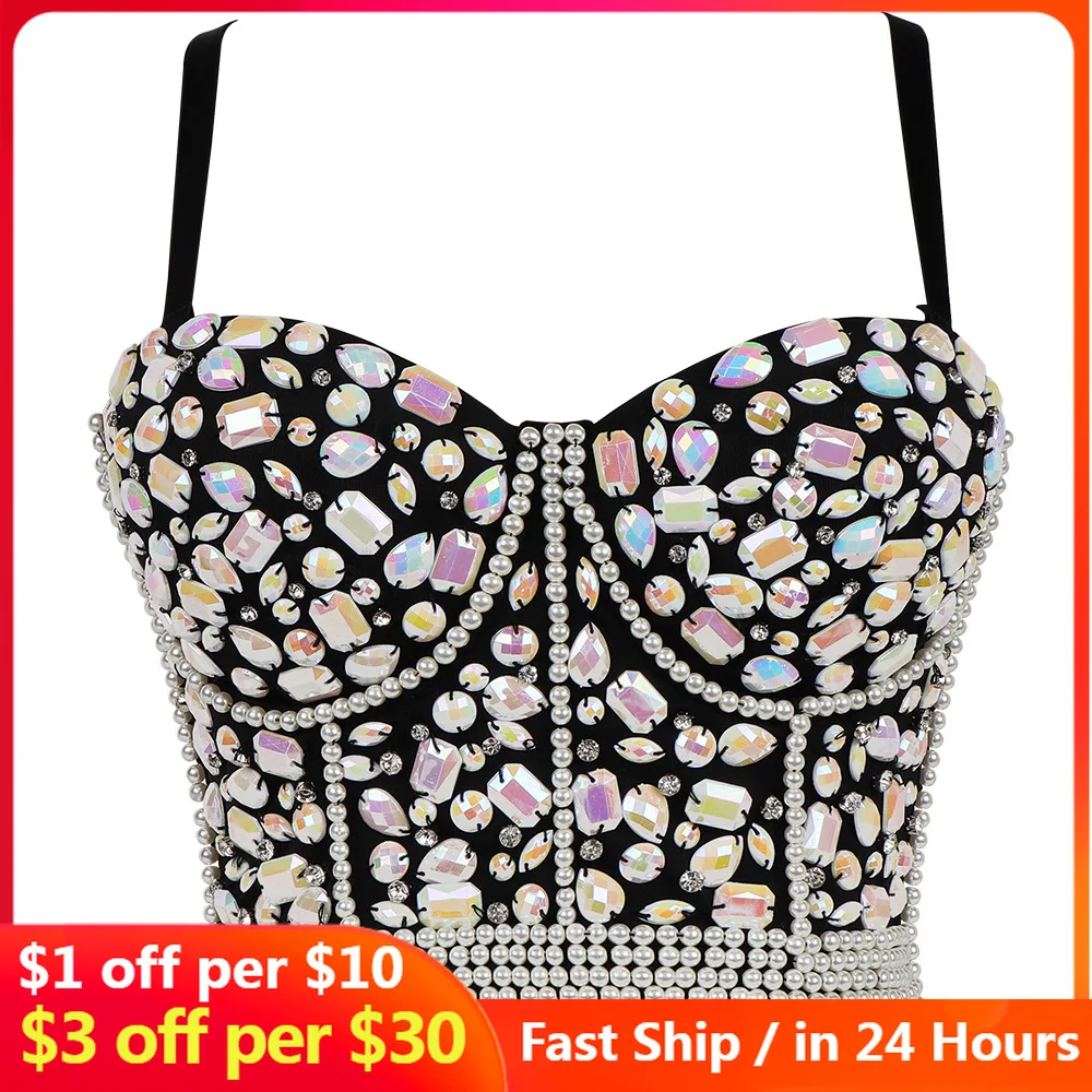 Женский корсет с жемчужинами ручной работы, блестящий бюстгальтер, ...