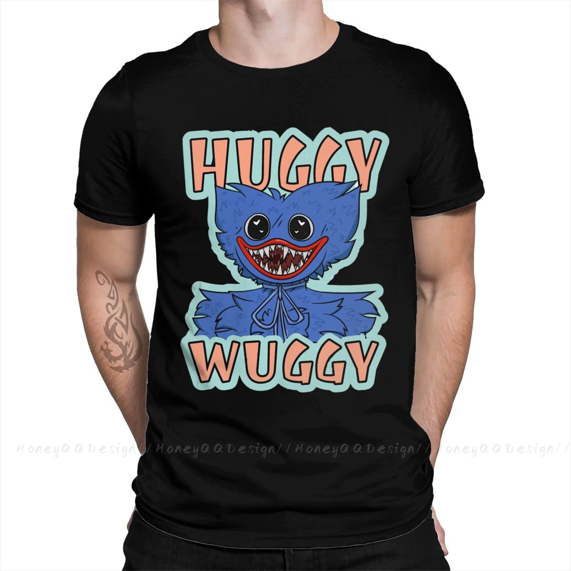 Футболка мужская оверсайз из чистого хлопка, черная рубашка с рисун...