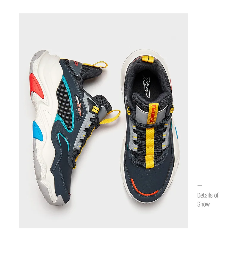 Мужские массивные кроссовки Xtep, на шнуровке, массивные, амортизир...