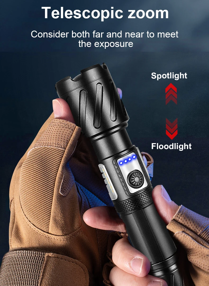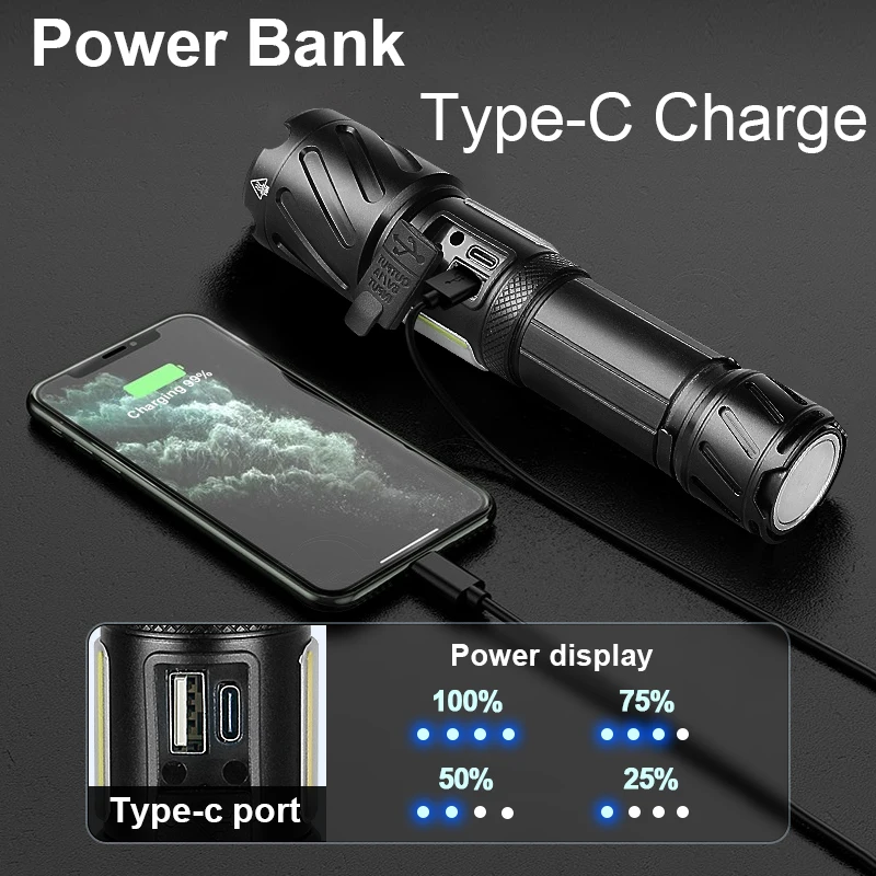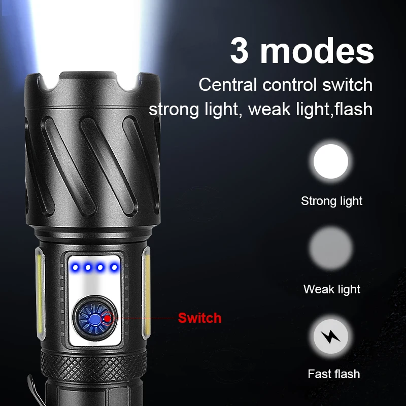 Суперяркий XHP199 Мощный светодиодный фонарик 18650 USB аккумуляторная вспышка Высокопроизводительный тактический фонарь COB с магнитом