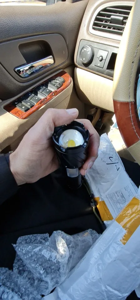 Фонарик очень хорошо освещает. Он пришел ко мне с одной из боковых пластмасс с маленькой щелью, я полагаю, из транспорта, но что такое фонарик очень хорош. Много света. Нужно проверить, как долго длится батарея