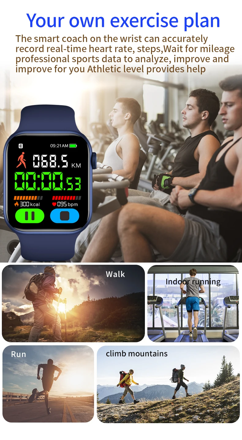 Новинка 2022, умные часы X8 44 мм с функцией отслеживания сердечног...