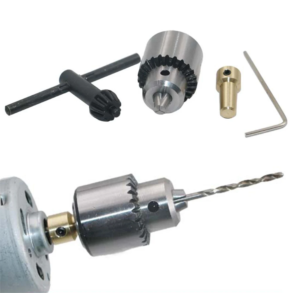 Зажимной патрон для микро-электродвигателя, Диапазон зажима 0,3-4 мм, конический мини-сверлильный патрон с зажимным ключом, латунный вал электродвигателя 3,17 мм