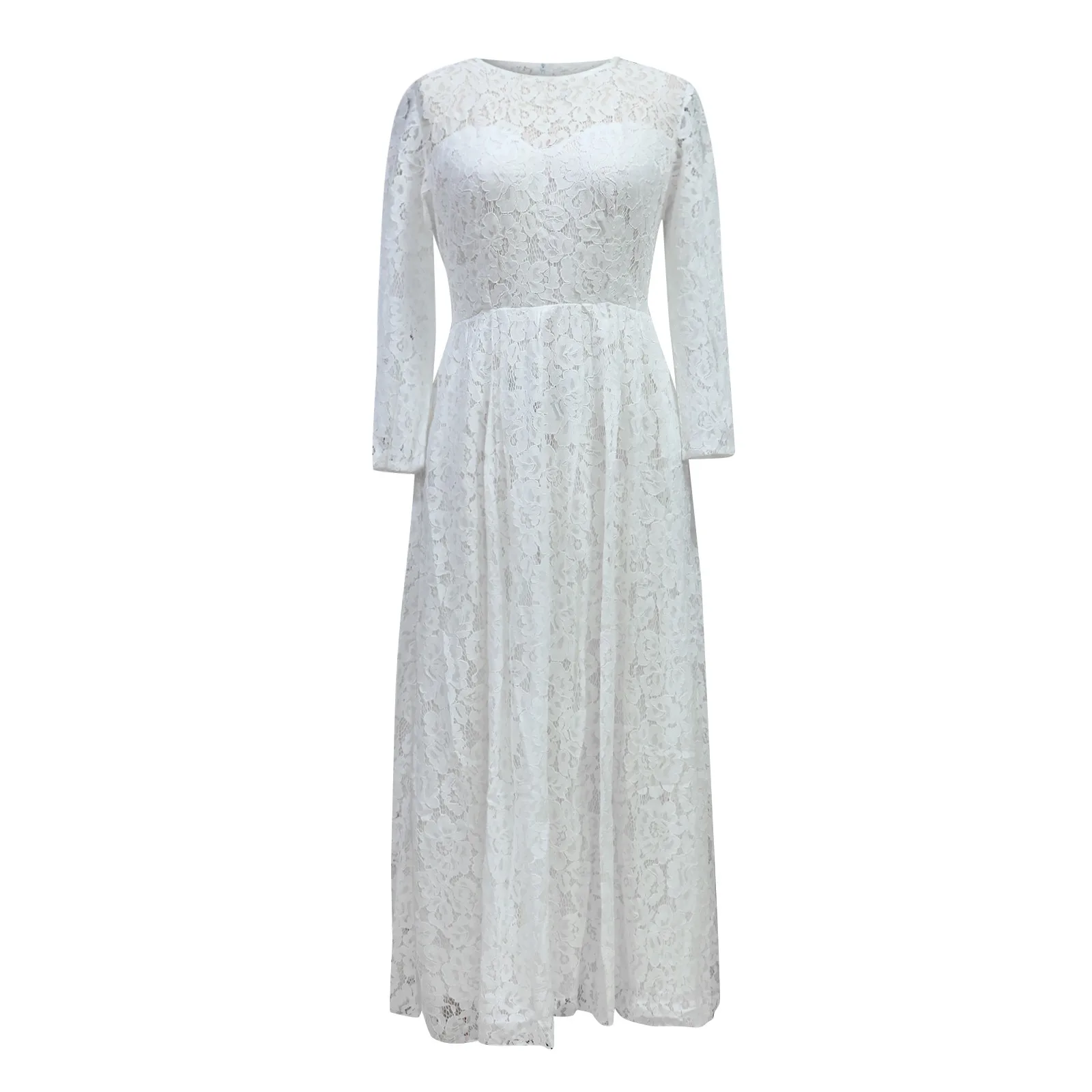 Модные сексуальные свадебные платья, Белое Кружевное облегающее платье миди с круглым вырезом и рукавом 34, элегантные свадебные платья, вечерние платья 2021