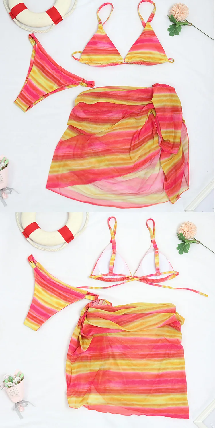 Женский комплект бикини с принтом, купальник из трех предметов, бюс...