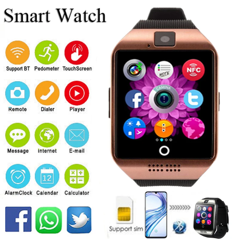 Q18 спортивные Смарт-часы с sim-картой 2G SMS GMS Bluetooth Вызов Whatsapp умные часы для мужчин и женщин мужские часы подходят для Facebook Twitter синхронизация часы