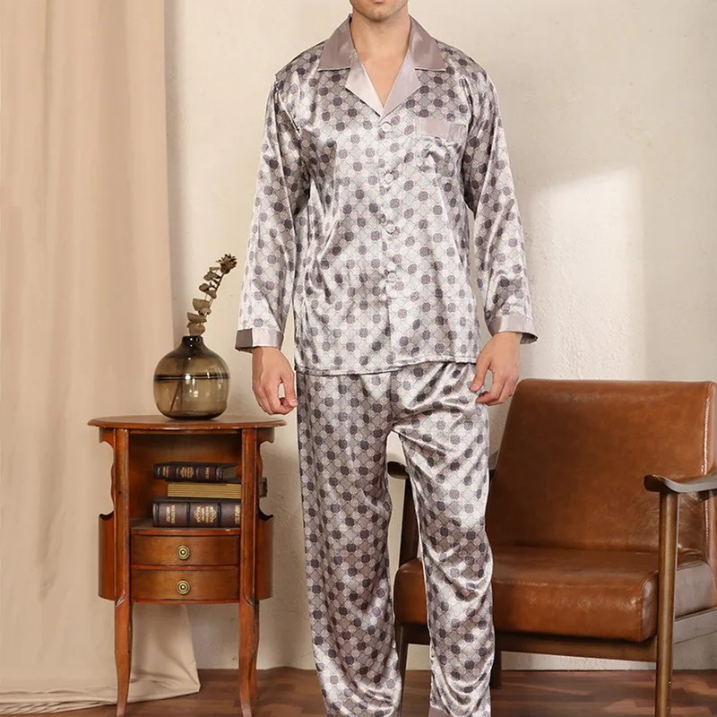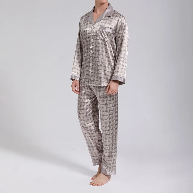 Пижамный комплект Pui Мужской Шелковый, шелковая Мягкая атласная ру...