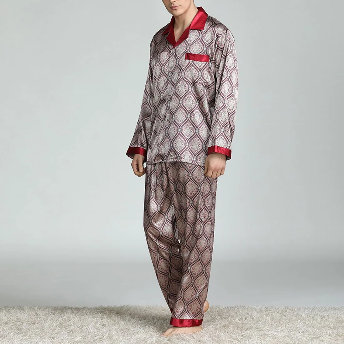 Пижамный комплект Мужской Шелковый атласный, одежда для сна, шелков...