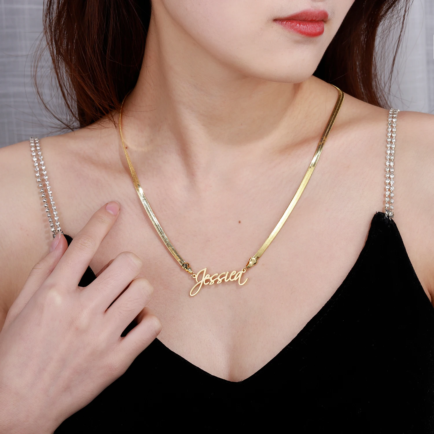 Ожерелье с именем змеи на цепочке для женщин, индивидуальное ожерелье с именной табличкой, кулон в виде змеи, ювелирное изделие, подарок для девушки, мамы