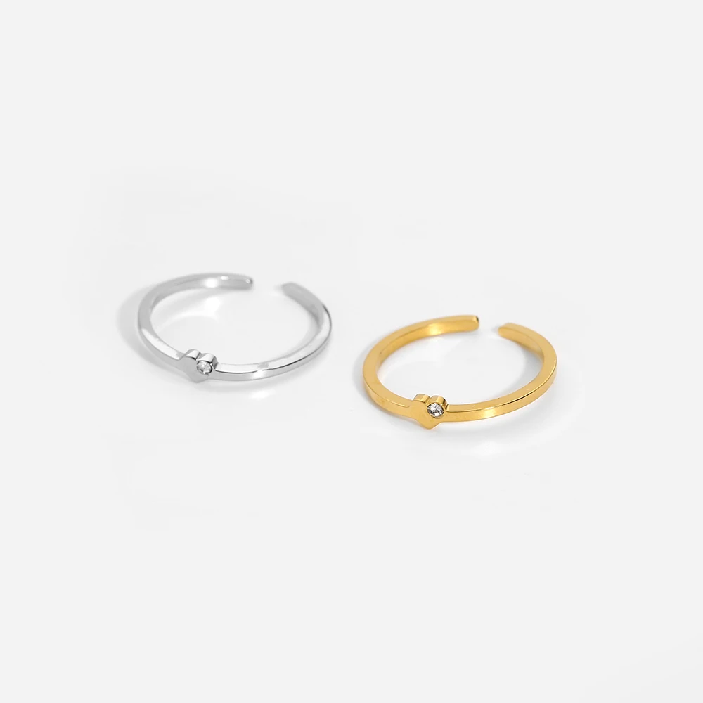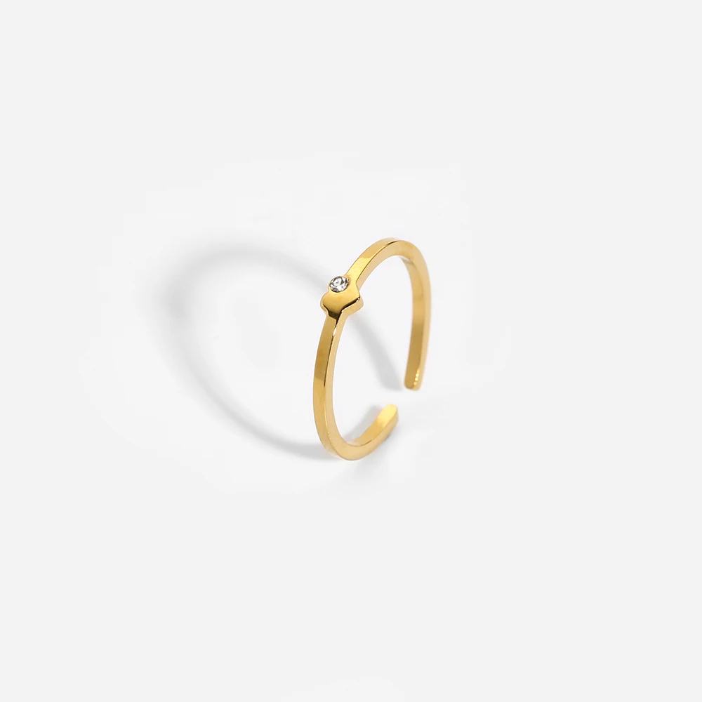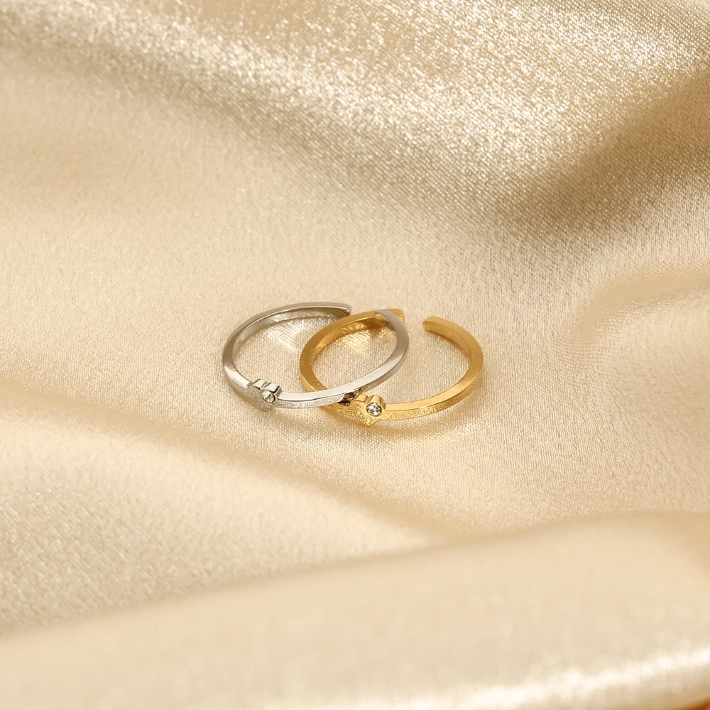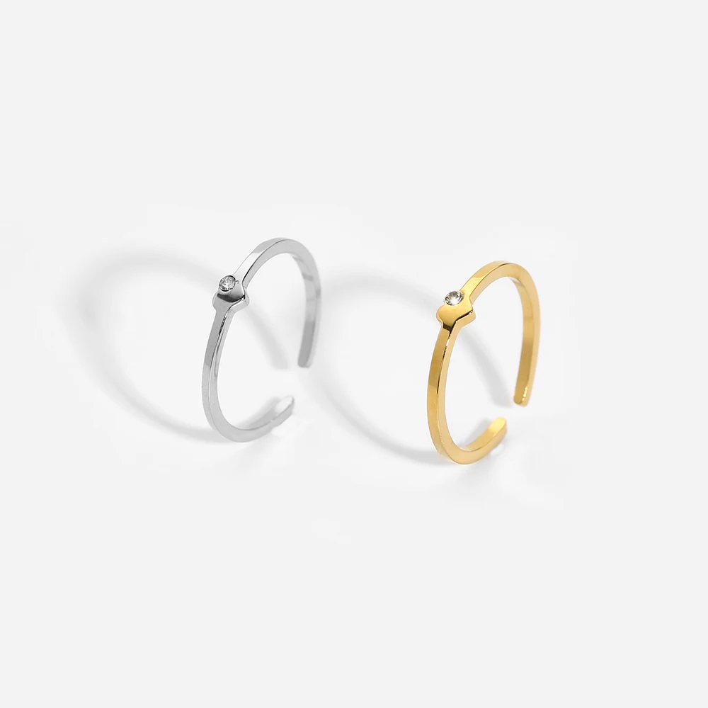 Женское кольцо из нержавеющей стали с позолотой 14 карат и инкрустированным Цирконом
