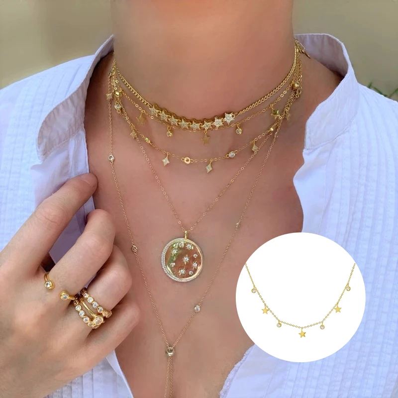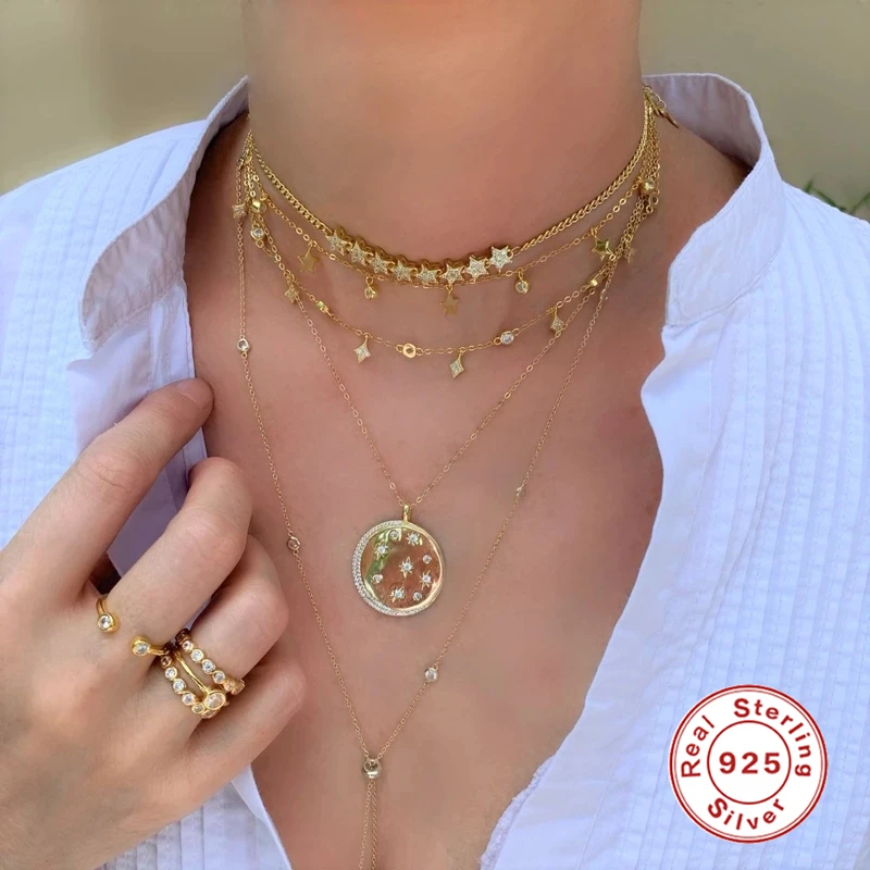 Ожерелье BOAKO Plata De Ley 925 для женщин 5 звезд циркониевая цепо...
