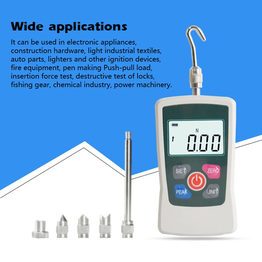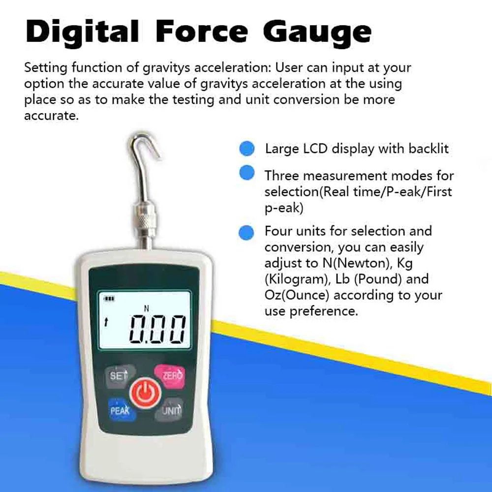 Цифровой измеритель силы, толкательный прибор с ЖК дисплеем, динамометр, 3 режима измерения, 4 единицы, переключаемое автоматическое отключение, сигнал сброса