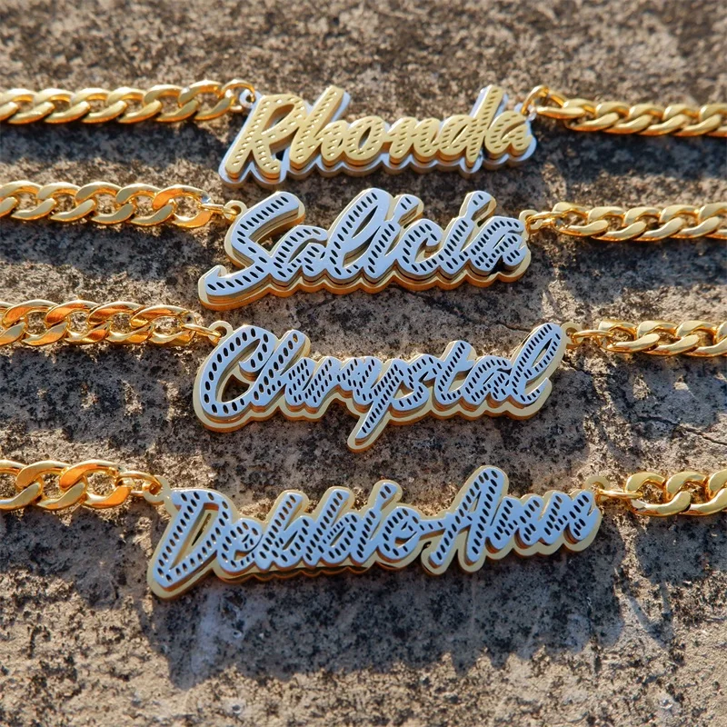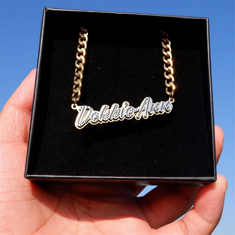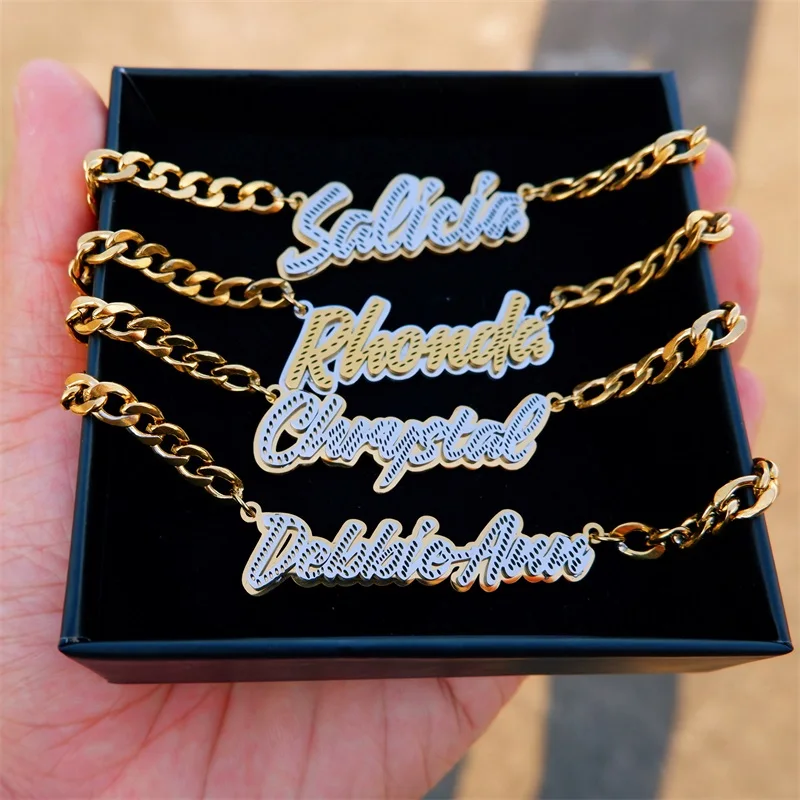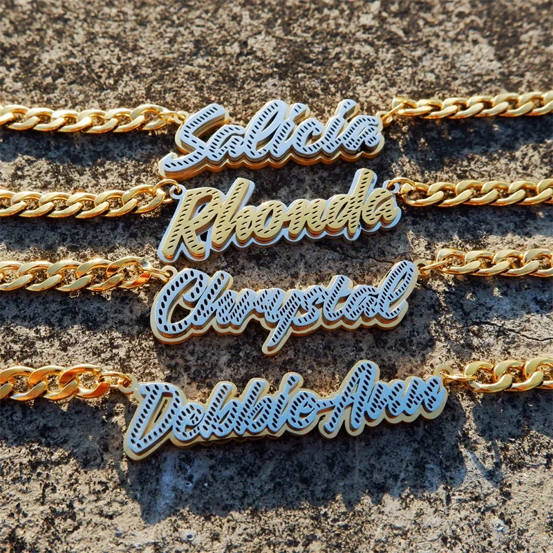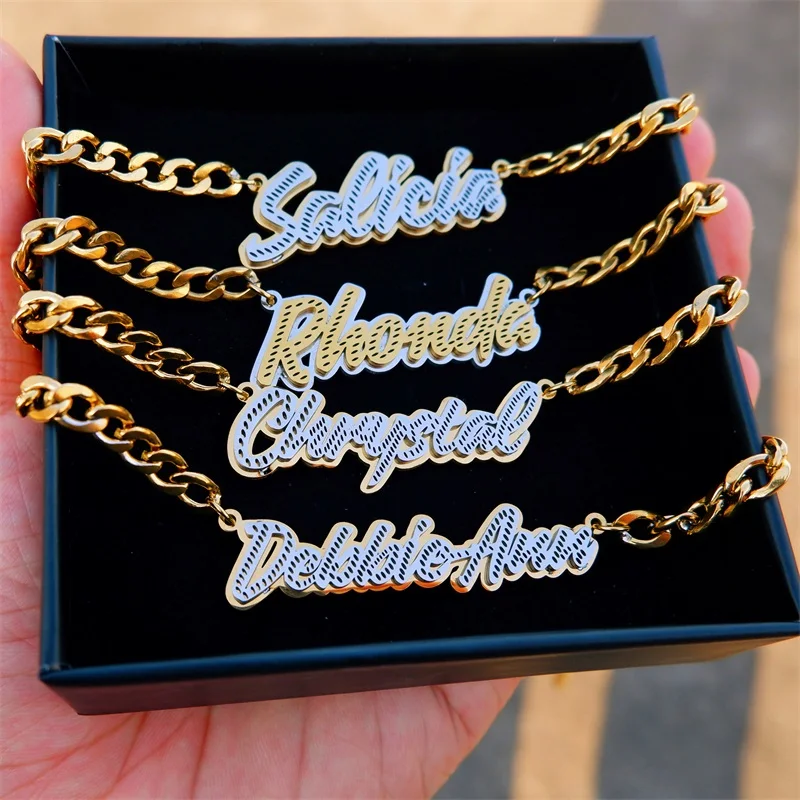 Индивидуальное ожерелье из нержавеющей стали с двойным именем, персонализированное золотое ожерелье 5 мм кубинской цепи, ожерелье с кулоном для женщин и мужчин, ювелирные изделия, подарок