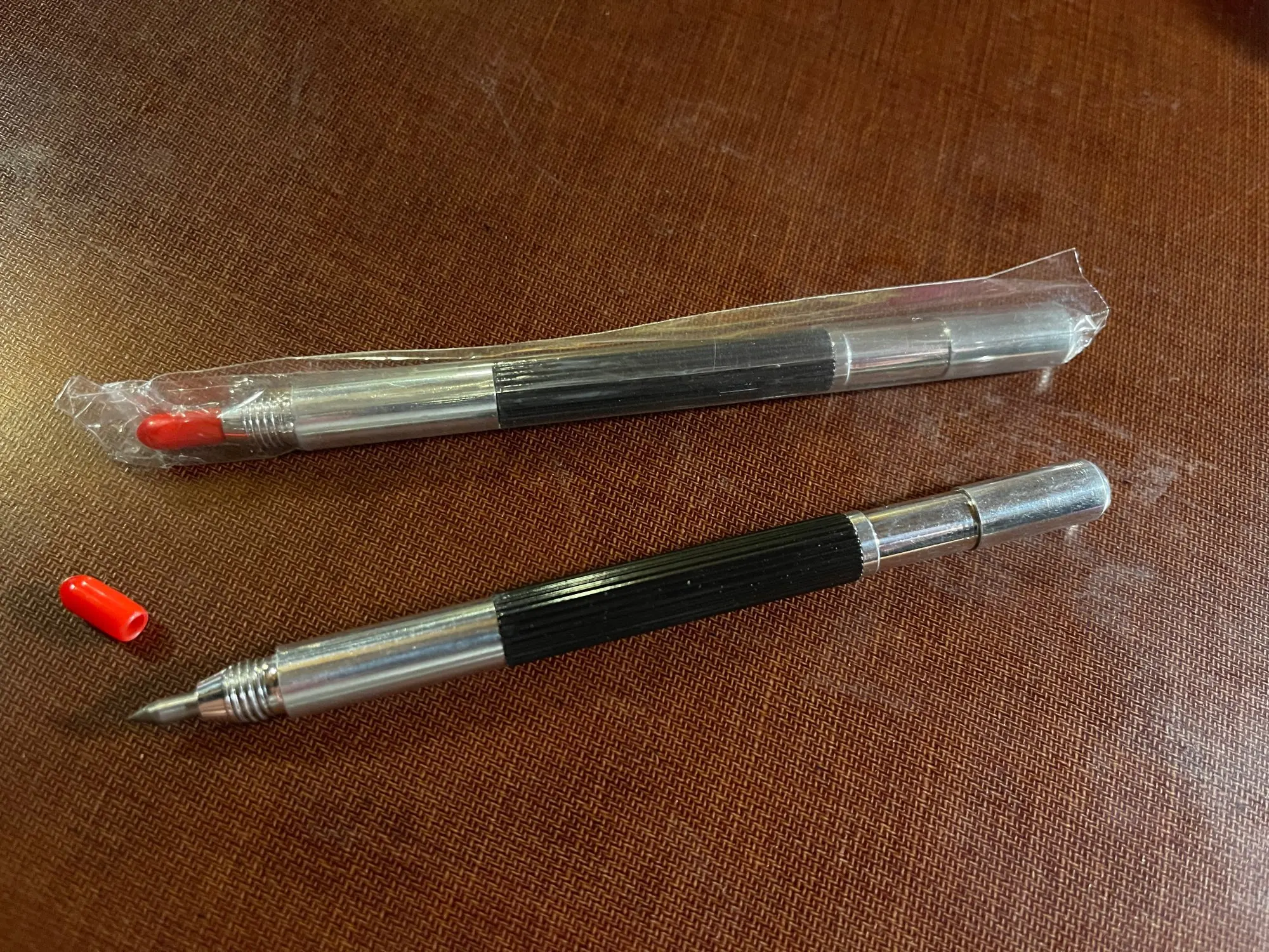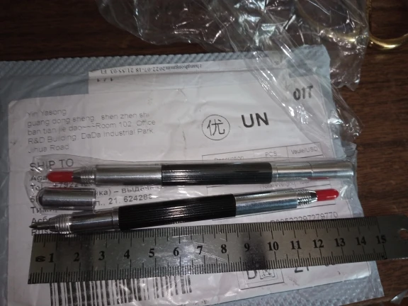 Легкие, двухсторонние, что тут еще добавить. Свою задачу выполняют, след в металле четкий. Жалко нет зажима для переноски в кармане, как у ручки, но это исправимо.