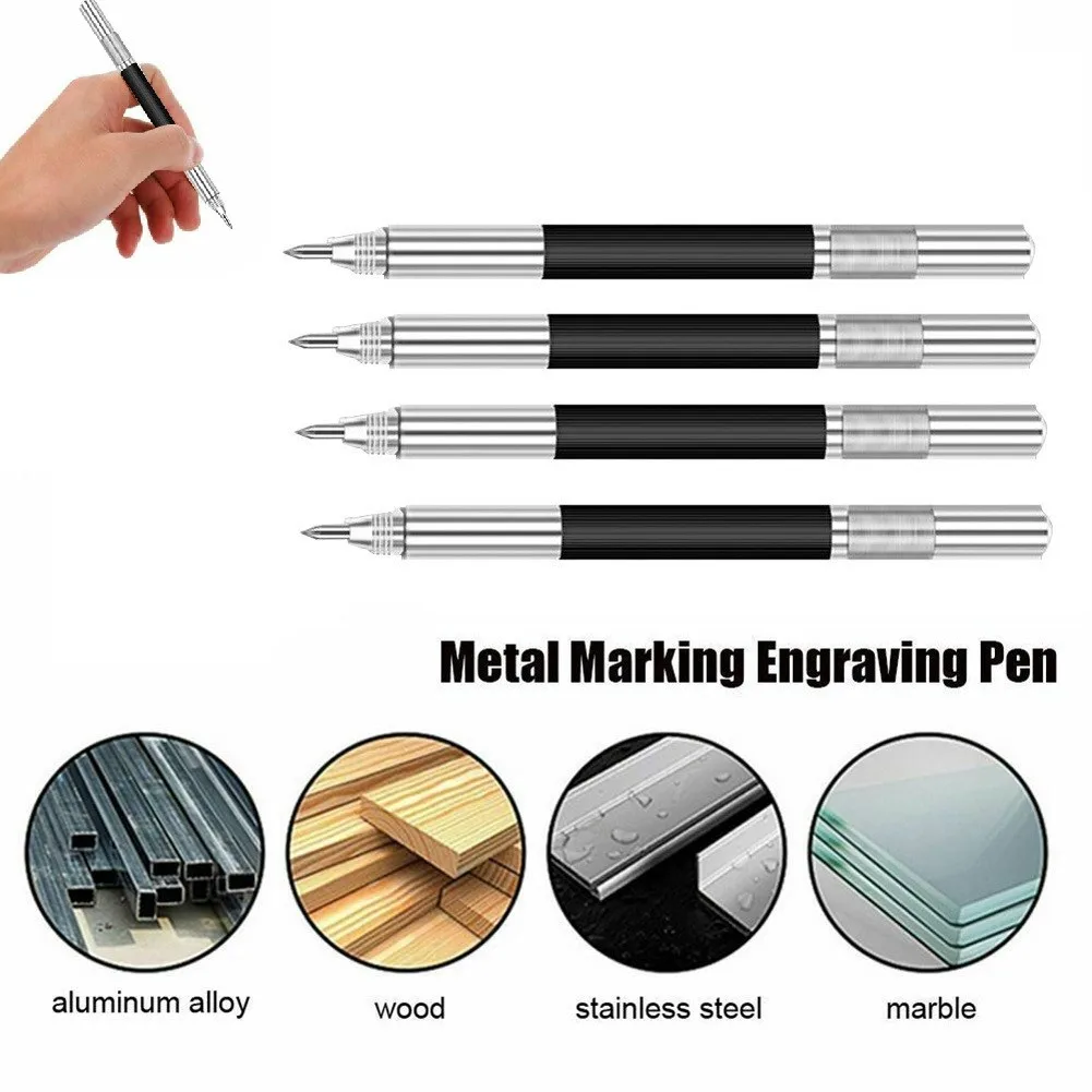4 шт. наконечник из карбида вольфрама, маркировочный наконечник для гравировки, стальной маркер для чернильных работ, двойной металлический маркер для резьбы по дереву, ручной маркер