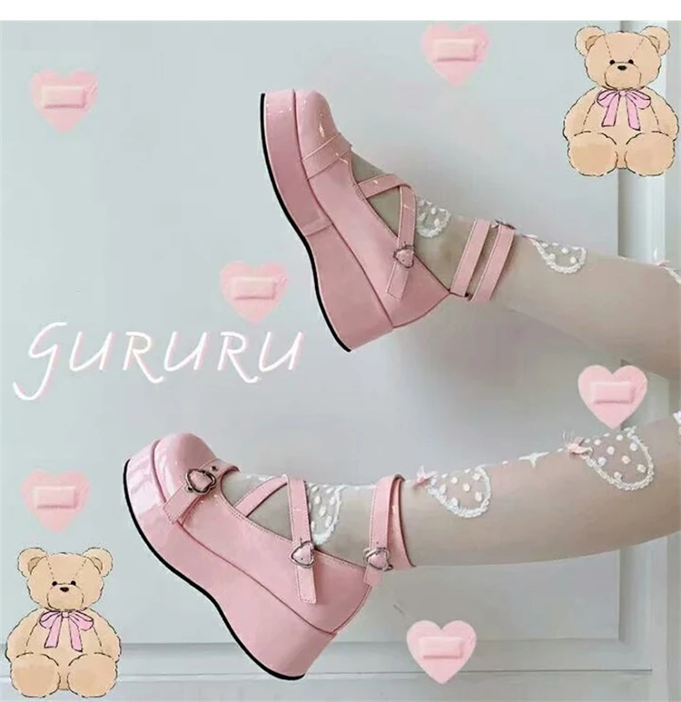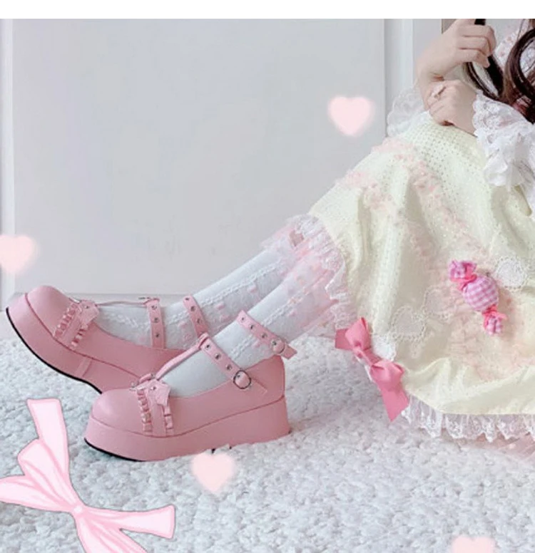 Туфли Lolita Kawaii обувь на платформе Loli девриана летучая мышь б...