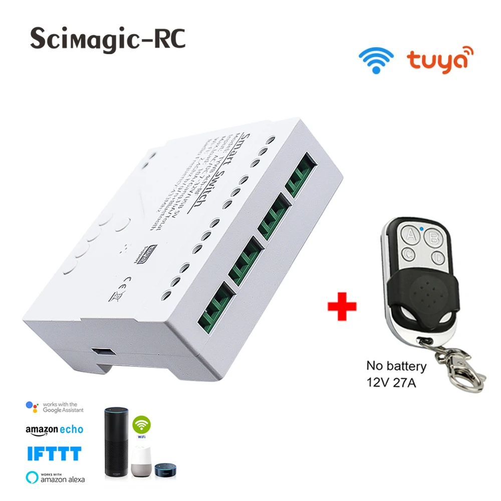 Этот продукт является 4-канальный универсальный WiFi беспроводной смарт-переключатель с RF 433 МГц RF модуль, для вашей системы «умный дом», чтобы удаленно и автоматического включения/выключения бытовой техники и электронных устройств с помощью приложения для телефона. Его также можно контролировать с помощью пульта дистанционного управления RF в помещении. Он может одновременно подключать и управлять четырьмя приборами в приложении, и вы можете самостоятельно включать/выключать каждую из четырех банд. Он также поддерживает включение/выключение устройств в определенное время и делиться ими с другими, чтобы вы могли контролировать свой умный дом вместе с семьей. Вы также можете управлять своей бытовой техникой через Amazon Alexa, а также для Google home/Nest,IFTTT и наслаждаться умной жизнью и сделать свой дом умнее.