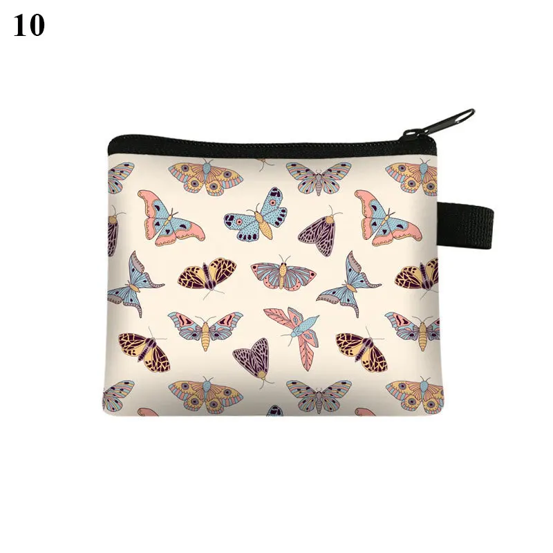 Кошелек для монет с принтом бабочки, женский кошелек, держатель для карт, сумка для хранения ключей, клатч, нейтральный, милый, яркий, свежий кошелек для карт