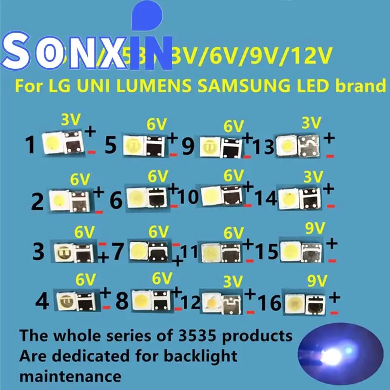 5-100 шт., светодиодные подсветки для LG UNI, SAMSUNG, 1 Вт, 3 в, 2 Вт, 6 в, 3535, 2,4 Вт
