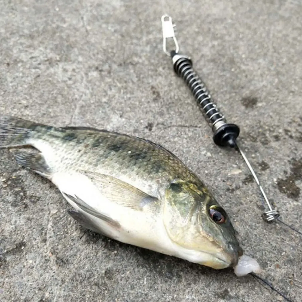 Когда рыба укусывает крючок, пружинное устройство срабатывает, чтобы автоматически тянуть крючок, чтобы предотвратить выбег рыбы и увеличить процент успеха рыбалки.