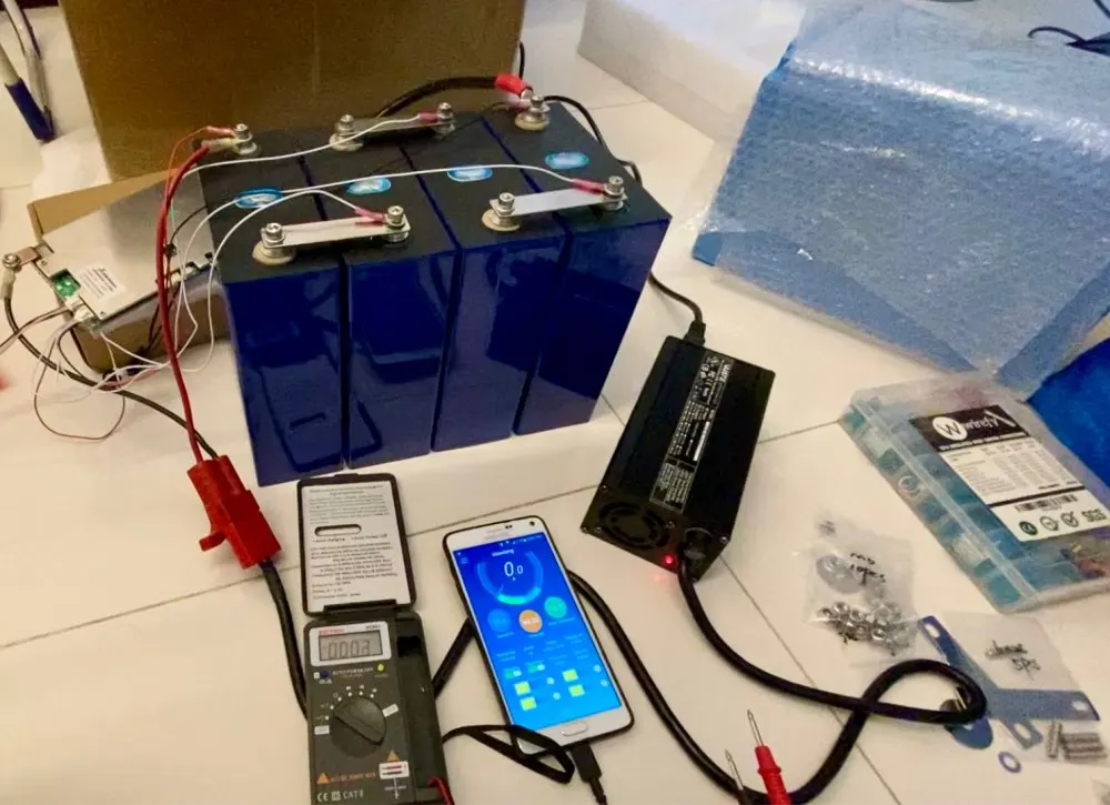 Батареи прибыли и выглядят новыми. Все 4 ячейки сбалансированы между 3,292-3,294 в, что довольно хорошо. Клетки выглядят немного надутыми, в отличие от клеток с жестким корпусом. Придется следить за этим после того, как он будет работать на моей лодке.