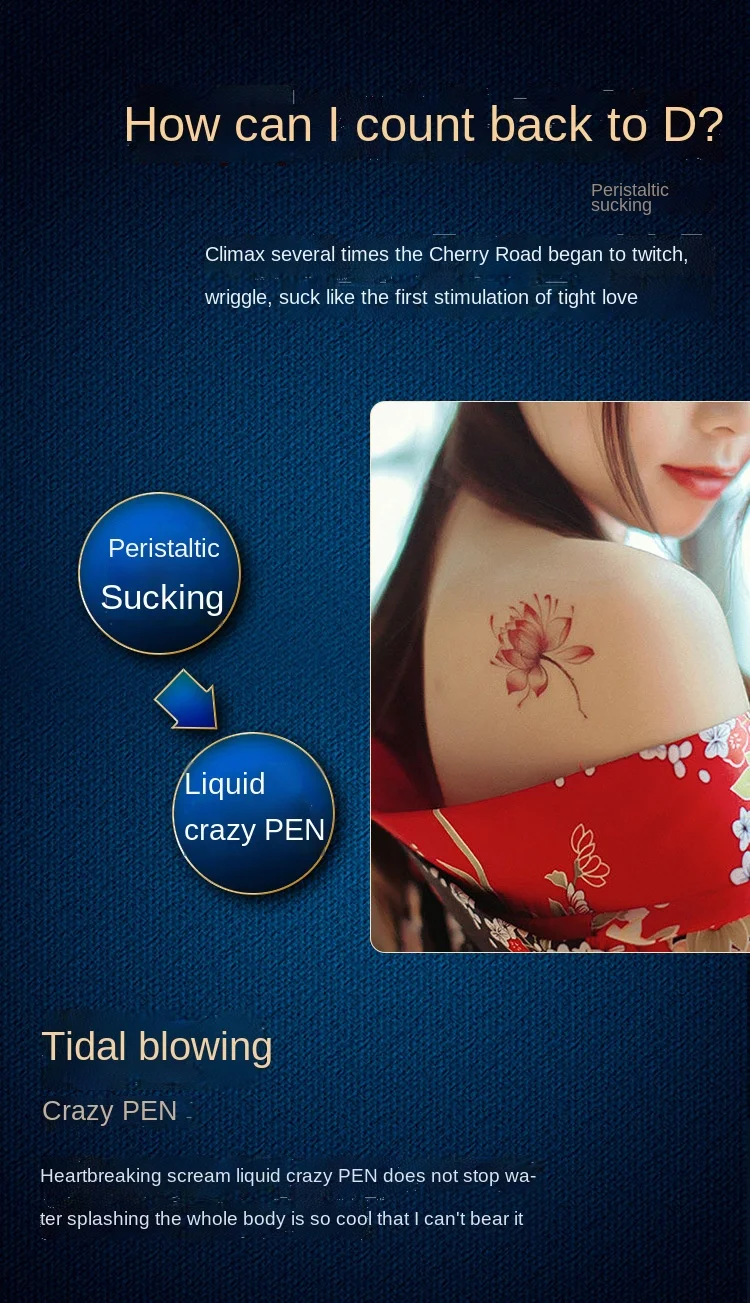 Функция: Значительно увеличивает либидо у женщин, начинает оргазмы через 3 минуты непрерывного полива, безостановочный оргазм через 5 минут и несколько раз за 20 минут. После 5 минут использования влагалище начинает автоматически двигаться и быстро сосать, как будто маленький рот сосет, позволяя мужчинам наслаждаться альтернативным удовольствием.