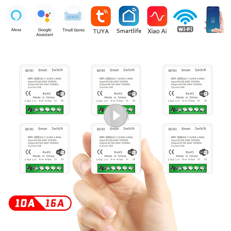 Мини Wi-Fi переключатель Tuya с поддержкой А и 2-сторонним управлением, автоматический модуль для умного дома, работает с приложением Alexa Google Home Smart Life
