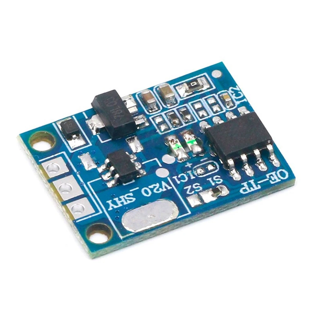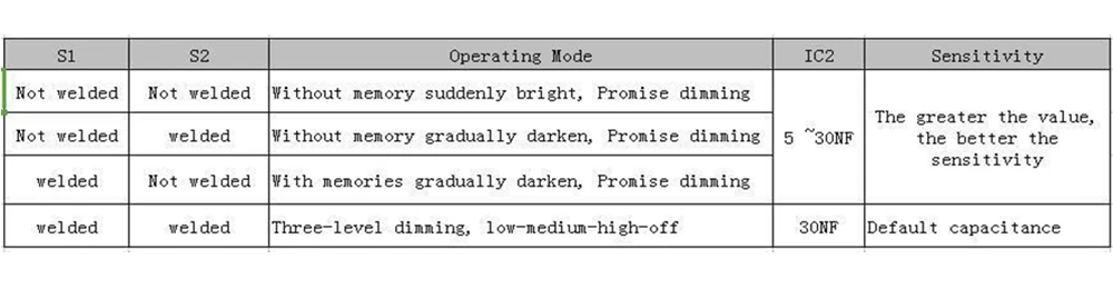 10 А модуль емкостного сенсорного переключателя с высоким током, рабочий ток тока до 3 А, поддержка бесступенчатого затемнения, красный и синий индикатор цвета и другие характеристики, может широко использоваться в управлении освещением, игрушках, бытовой технике, кухня, зеркало для ванной комнаты и другие продукты.10 А большой ток раковины, можно установить несколько режимовМини маленький размер, легко установитьКрасный и синий светодиодный светильникСветодиодный красный индикатор, выход сенсорного датчика синий.Характеристики модели: OE-TP затемнения (10A)Диапазон электропитания: 5 ~ 20 В постоянного тока (рекомендуемый источник питания 12 В)Выходной ток: Макс. Ток тока 10 А (рекомендуется работа 3 а)Функция защиты: защита от обратного ходаИндикация срабатывания: выходной красный светильникРежим работы: настраиваемый (по умолчанию: с эффектом памяти постепенно темнеет, обещает Затемнение)Расстояние касания: менее 6 мм (стеклянный акрил)Ток покоя: менее 5 мАРабочая температура: -40 ~ 85Общее Анодное Соединение:Например, контроль полосы 12 В: VCC модуля разъема питания 12 В. GND отрицательного модуля. Контролируемая лампа имеет VCC положительного модуля. Из отрицательного модуля. После включения, сенсорная панель может использоваться для управления полоской светильник, и яркость светильник можно регулировать на ощупь. Например, контроль скорости двигателя 12 В: VCC положительного электродного модуля источника питания 12 В. GND отрицательного модуля. VCC положительного полюса управляемого двигателя. Из отрицательного модуля. После включения двигатель может управляться с помощью сенсорного модуля, и Управление скоростью двигателя может быть достигнуто на ощупь. Интерфейс управления: в общей сложности 3 контакта (VCC, GND, OUT), VCC как источник питания, GND как земля, как цифровой выходной сигнал; Светодиодный индикатор: электрический зеленый (синий) светильник, сенсорный датчик выхода красный светильник. Область касания: Внутренняя область значка отпечатка пальца вызвана прикосновением пальца. Позиционирование отверстия: 2 м2 позиционирование винтов отверстия, 2 мм диафрагмы, легко установить и расположить модуль, для достижения комбинации модулей. Применение: 12 В светильник (светодиодный) регулировка яркости касания. 5-20V DC контроль скорости двигателя. Режим памяти: последняя яркость набора модулей для загрузки яркости по умолчанию, значение по умолчанию памяти системы отключеноПостепенно осветление: светильник постепенно открывается, чтобы установить яркость, выключите светильник s, когда яркость постепенно закрываетсяВнезапный яркий светильник: светильник s, когда яркость непосредственно устанавливается, выключает светильник s, когда светильник s непосредственно выключаетсяНажмите и удерживайте Кнопку Сенсорный экран: для того, чтобы достичь Плавная тусклая, долгое нажатие на ощупь, яркость светильник постепенно увеличивается, яркость светильник в тех случаях, когда время выпуска, чтобы освободить яркость выхода в свет, снова нажмите на прикосновение, яркость постепенно уменьшается.При ярком освещении светильник, когда высвобождается яркость времени выпуска, для скорости двигателя, регулирования выходного напряжения и других случаев