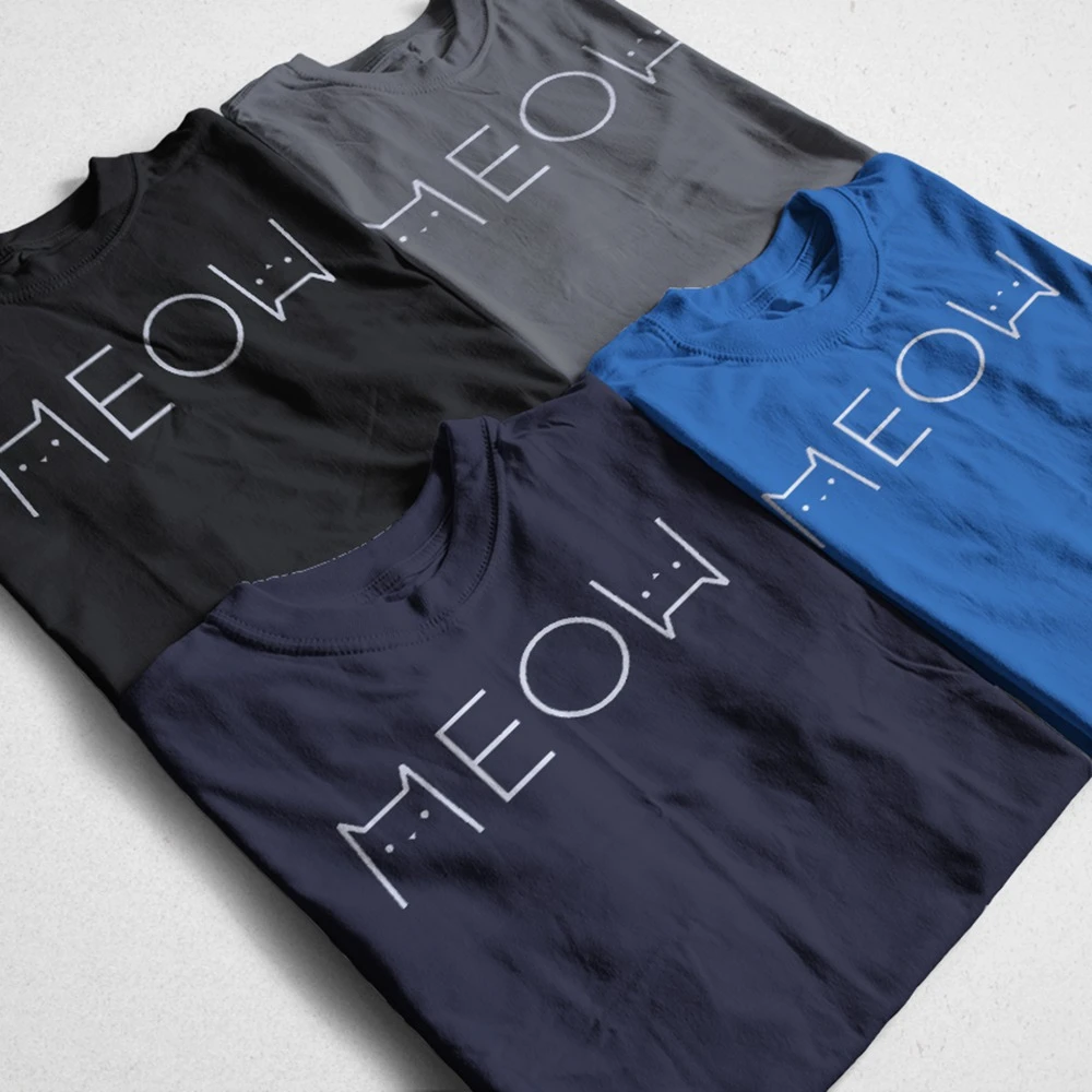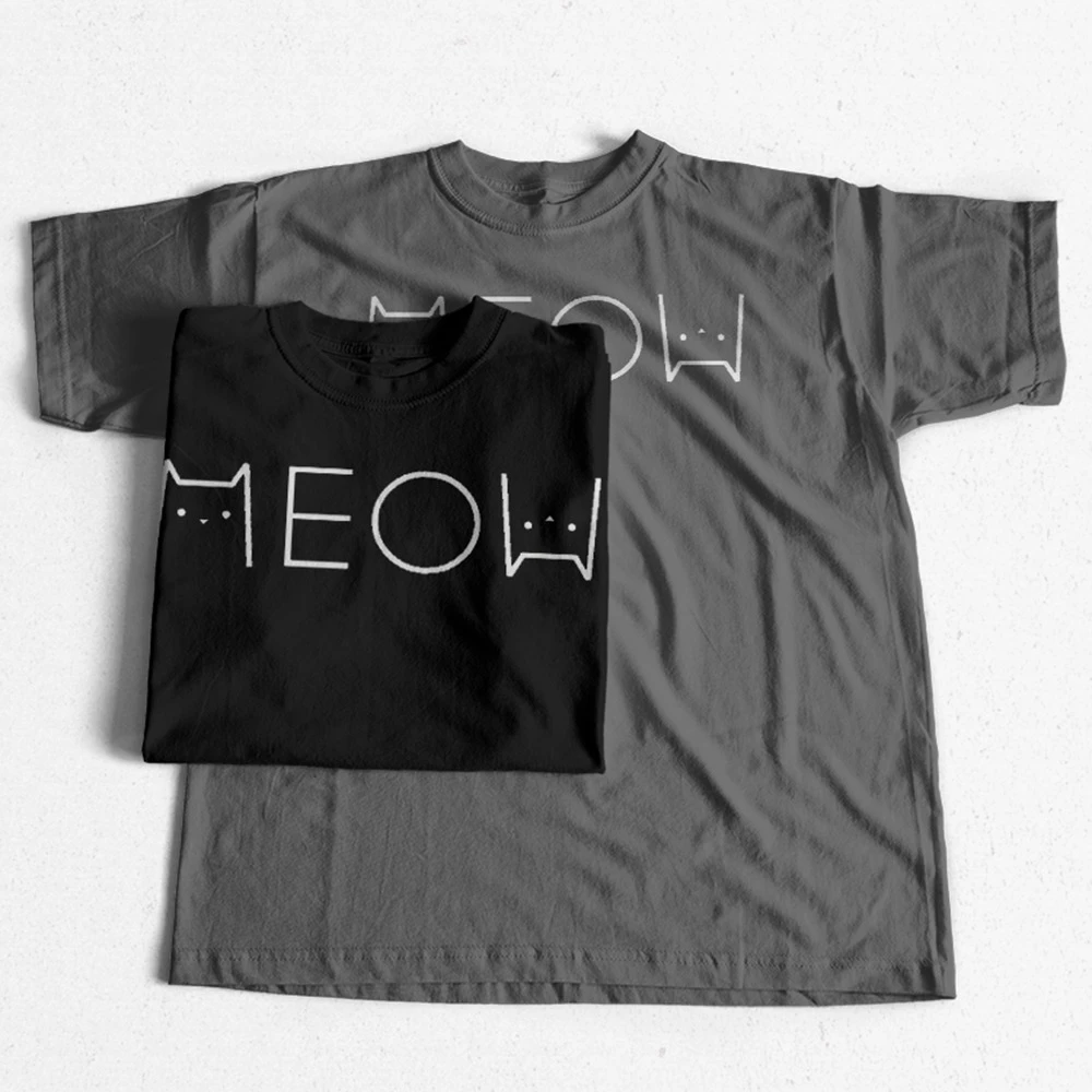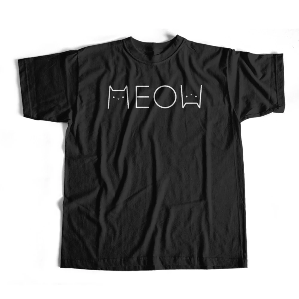 Футболка COSMIC мужская с надписью meow cat lover, тенниска из 100% хлопка, крутая майка с принтом meow cat, крутая майка с круглым вырезом