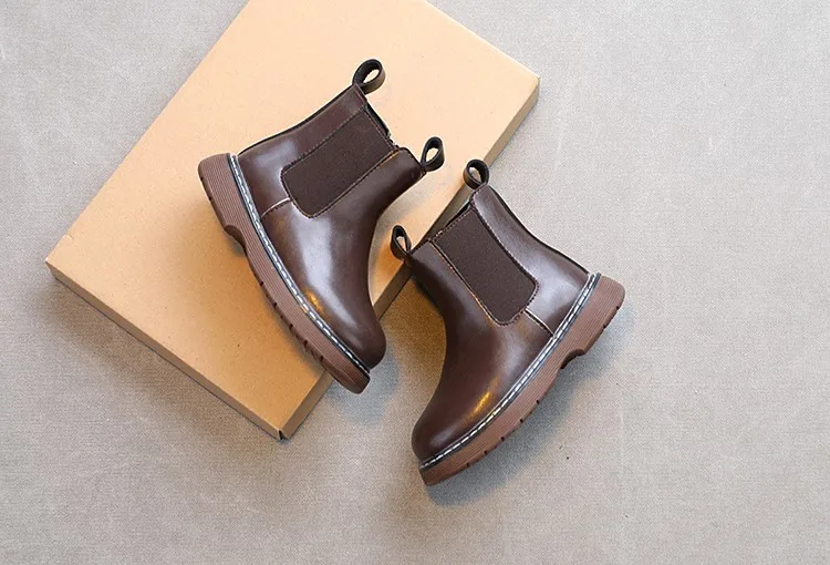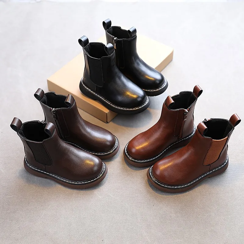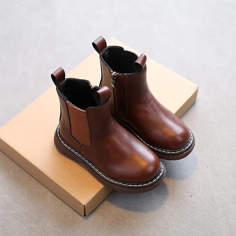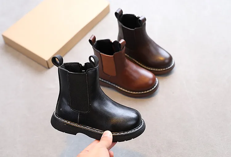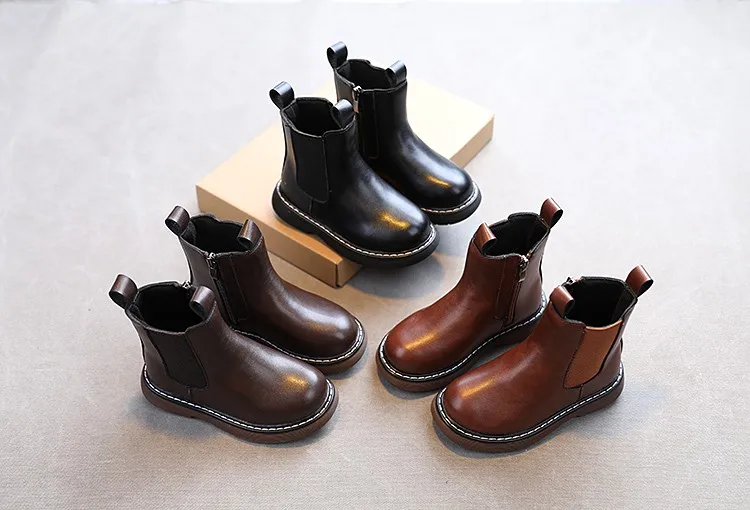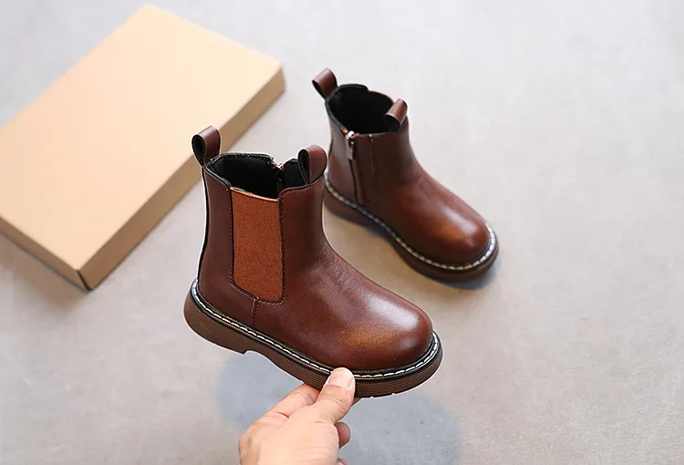 Детские ботинки челси, однотонные, четыре сезона, искусственная кожа, мягкие Нескользящие, на молнии, модные короткие сапоги, 26-37