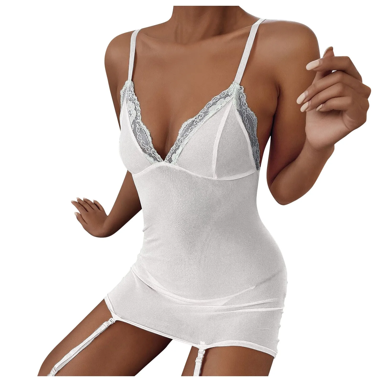 Женское кружевное сексуальное платье с V-образным вырезом и подвязками