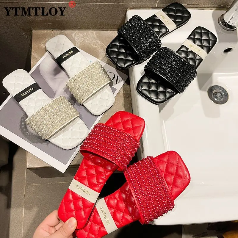 Сандалии женские кожаные, шлепанцы на плоской подошве, роскошный дизайн, Повседневная пляжная обувь, красные сланцы, большие размеры 42, лето